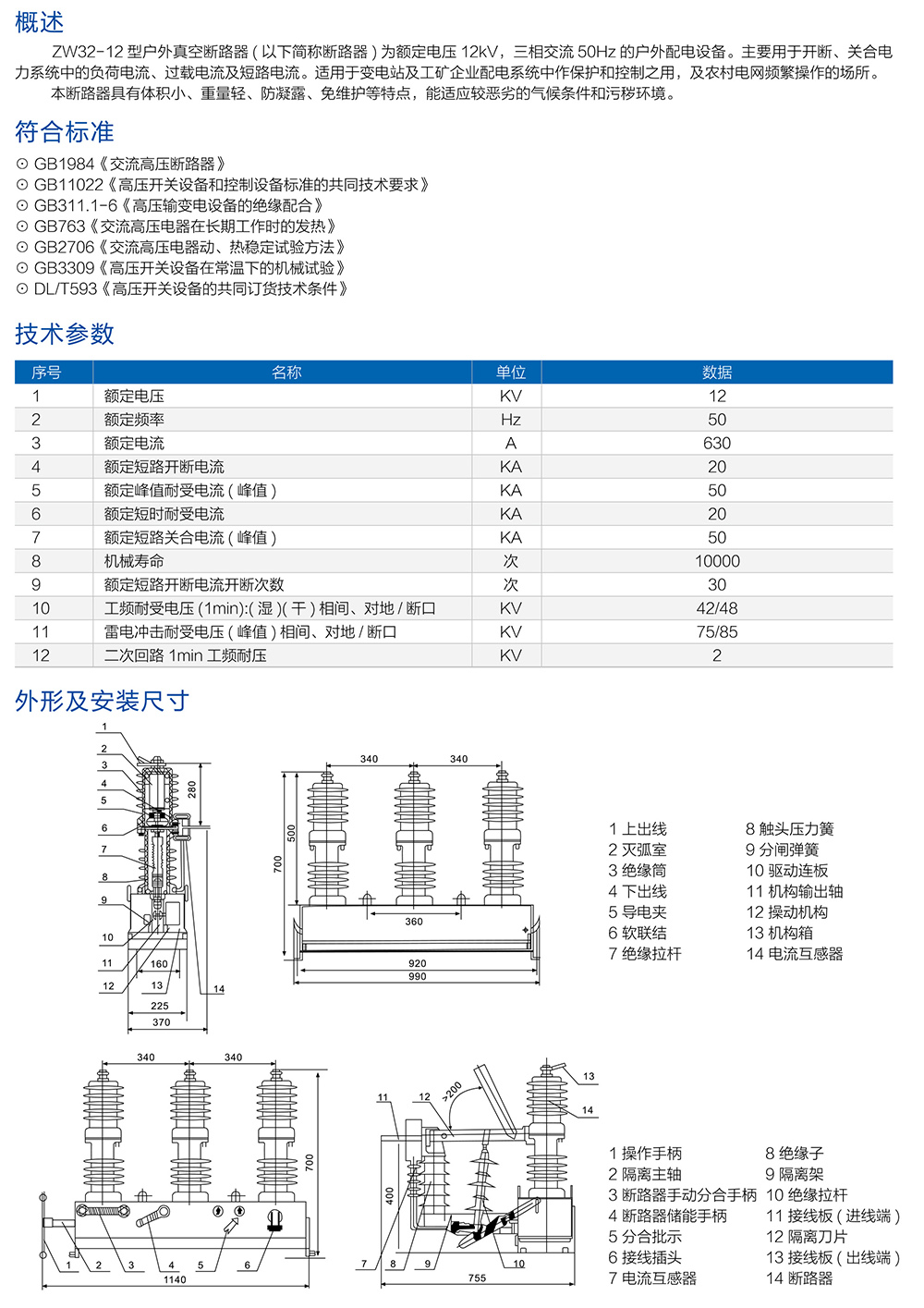 ZW20-12F系列户外高压交流分界真空断路器