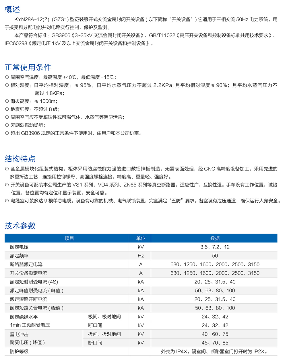 KYN28A-12铠装移开式交流金属封闭开关设备