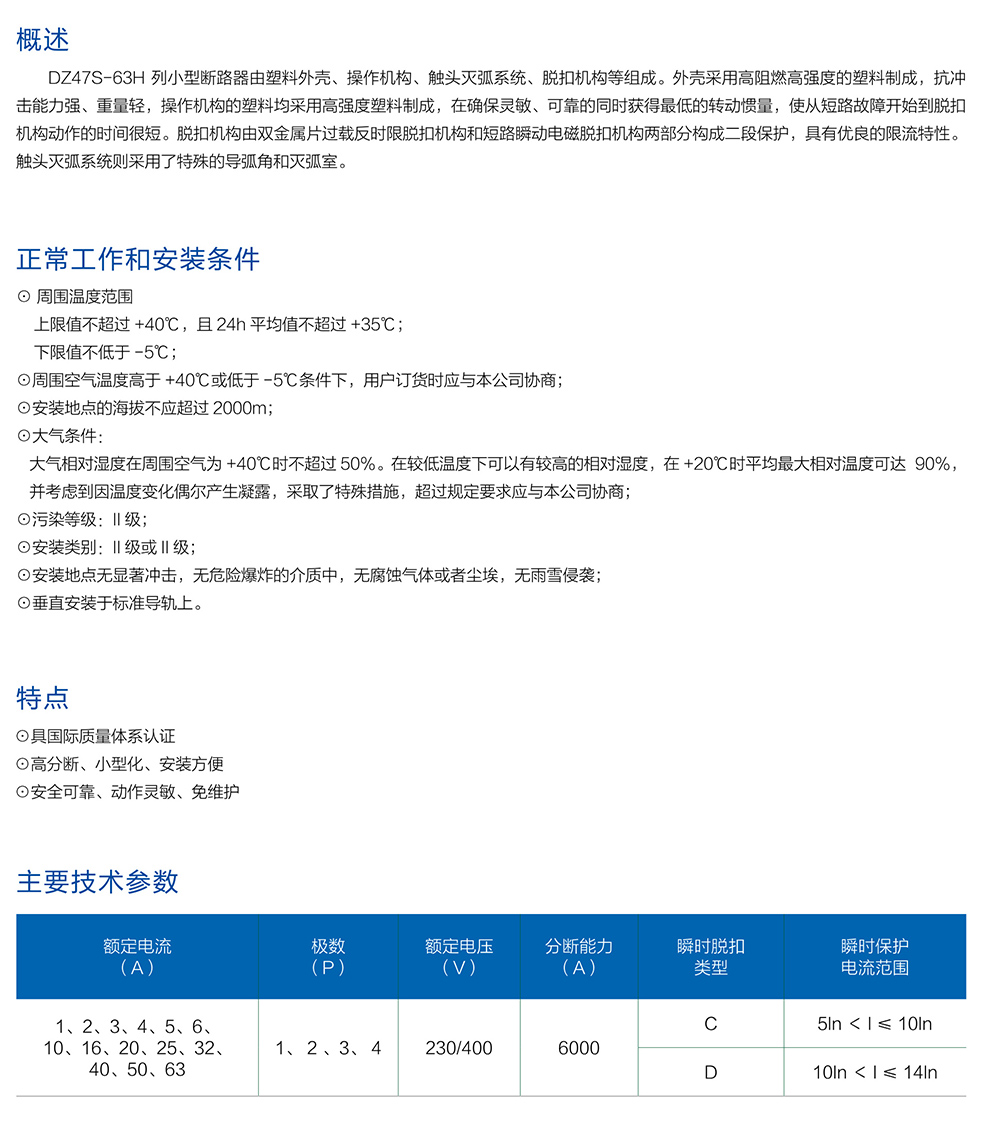 DZ47S-63H系列小型断路器