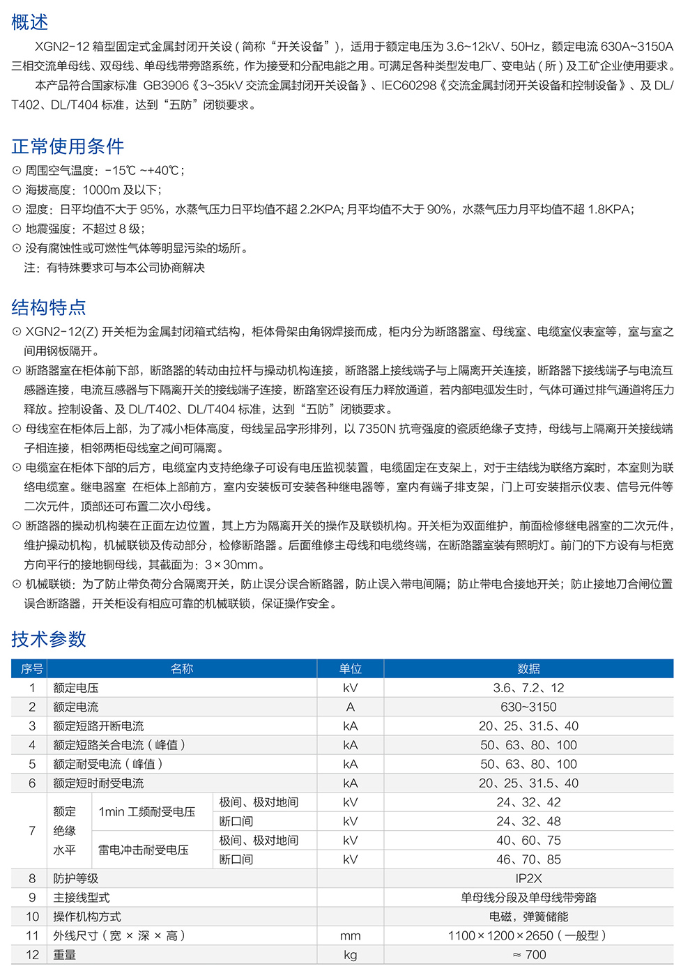 XGN66-12(Z)型固定式封闭开关设备