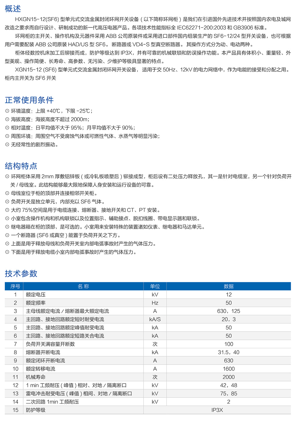 HXGN15-12(SF6)单元式交流金属封闭环网开关设备